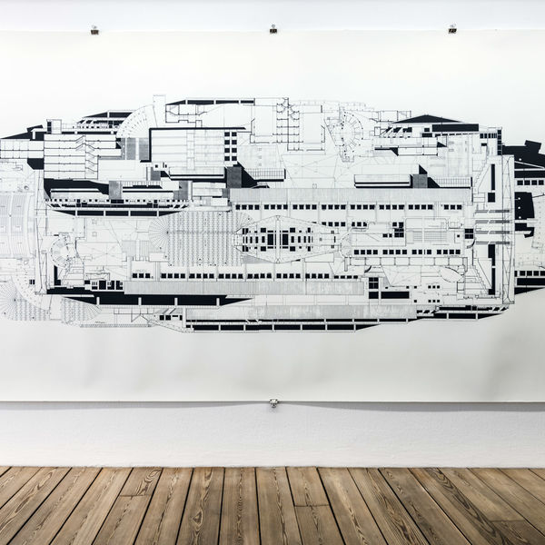 Der Ausstellungsparcours erzählt von Incompiuto [Unvollendet], genauer: der Herausbildung eines richtiggehenden Stils und seiner verschiedenen Verästelungen: angefangen mit den ersten Arbeiten zum Projekt – darunter die großformatige Collage Astronave madre [Mutterraumschiff] (2008), der Querschnitte und Aufrisse unvollendeter Bauten in Giarre (Catania) zugrunde liegen, oder die Videoarbeit Intervallo (2009), die sich auf ironische Weise die Intervalli RAI zum Vorbild nimmt, jene „Lückenfüller“ in den Sendepausen, die Landschaftsausschnitte und Denkmäler Italiens zeigten – über jüngste Arbeiten – darunter Skulpturen aus Stahlbeton, die Videoarbeit Invitation for a dream (2018), die ein Gespräch zwischen dem französischen Philosophen Marc Augé und dem amerikanischen Kurator Robert Storr über das Unvollendete wiedergibt (beide sind mit einem Text im Buch vertreten), und Fotografien des Off-White-Lookbook – bis hin zu ganz neuen Arbeiten, die eigens für die Ausstellung entstanden sind.