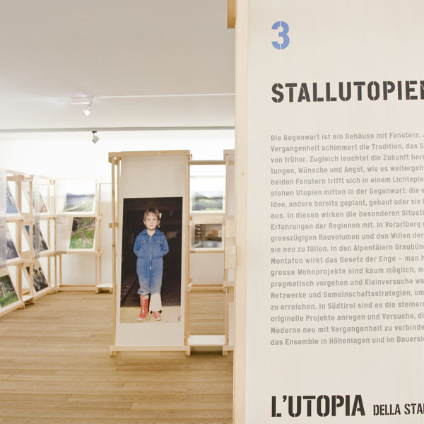 Die Landwirtschaft in den Alpen ist dramatisch verändert worden. Der Stall bildet den Wandel ab und begleitet ihn. In Dörfern und Landschaften liegen immer mehr Ställe brach, werden umgenutzt oder verfallen. Die zeitgenössische Landwirtschaft baut neue Ställe für Tierhaltung, Obstlager und Weinkelterung. Verfall, Umnutzung, Neubau verändern die Orts-, Siedlungs- und Landschaftsbilder. Die Ausstellung erkundet die Architektur und die Soziologie des Stalls in Südtirol, Graubünden und Vorarlberg. Die Ausstellung und ihr Katalog zeigen Gemeinsamkeiten und Differenzen der drei topografisch ähnlichen, kulturell oder historisch aber unterschiedlichen Gebiete. Sie singen den Abgesang des Stalls und entwerfen seine Zukunft: Der Stall verkommt zur Ruine, er wird zur Kunstgalerie, zur Parkgarage oder zum Wohnhaus umgebaut oder einfach als wertvolle Kubatur verkauft.