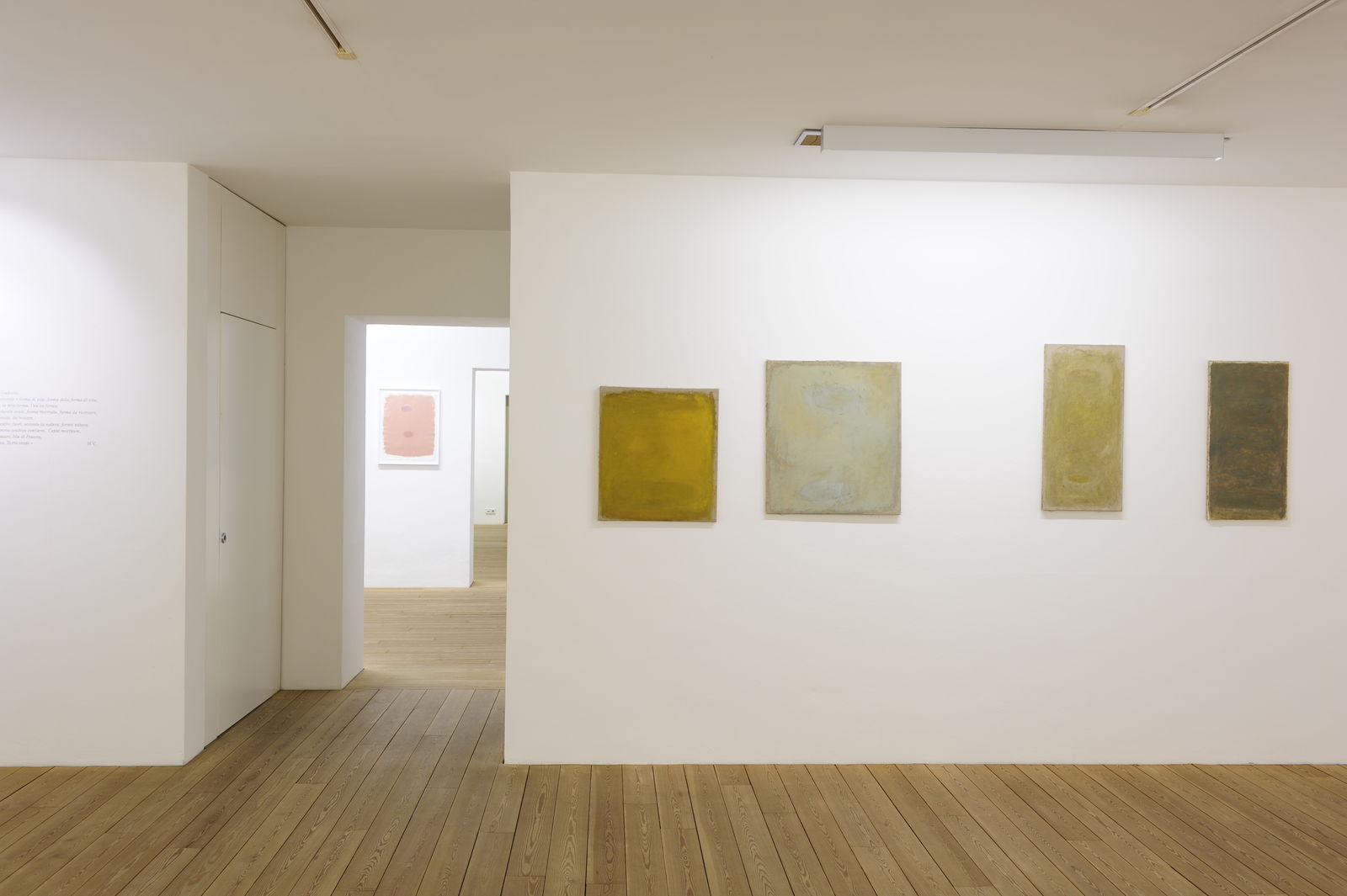 Die Ausstellung umfasst etwa 30 Arbeiten auf Leinwand, 30 Arbeiten auf Papier und Zeichnungen sowie Texte wie das Notizbuch Vallazzas – dieses gibt einen aufschlussreichen Einblick in dessen geistige und theoretische Grundlagenarbeit.