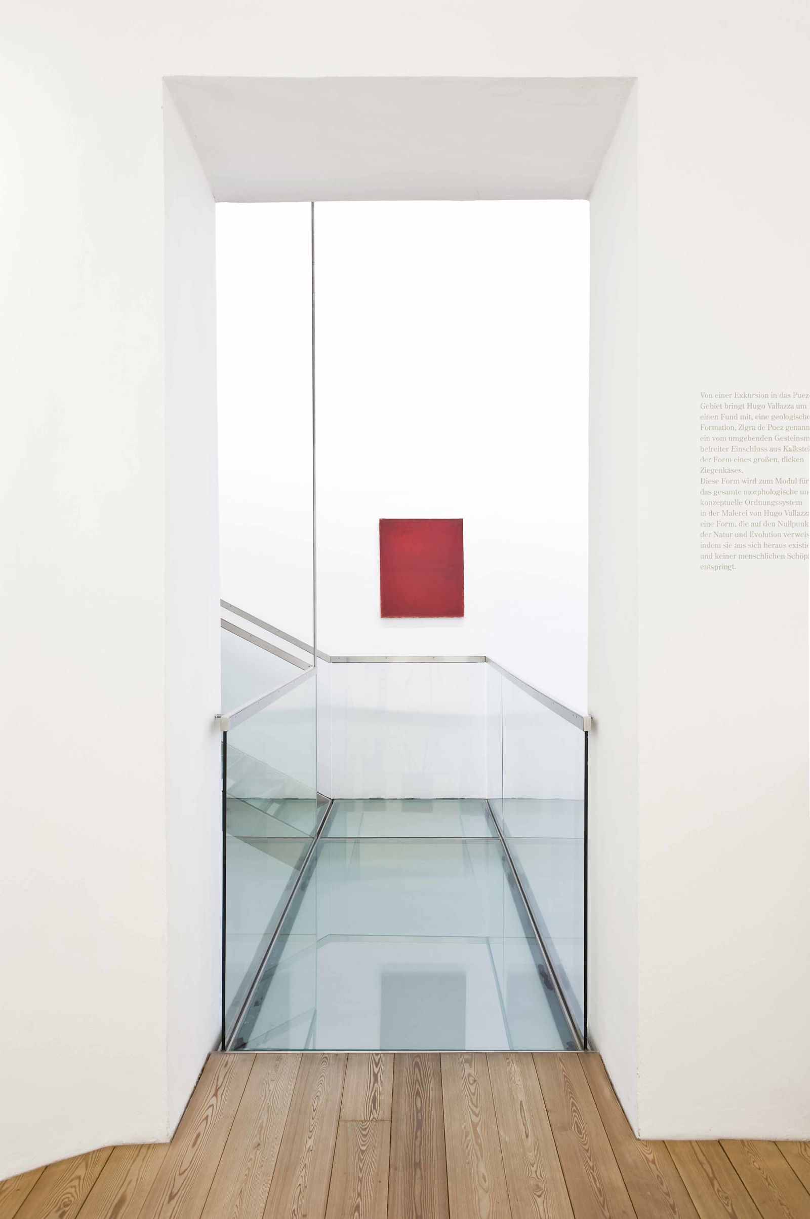 Der früh verstorbene Künstler Hugo Vallazza (1955 – 1997) besetzt mit seinem stark von der Frage nach der Wahrheit in der Kunst geprägten Werk eine eigenständige und radikale Position, die zu einer Reflexion über die Zusammenhänge zwischen Lebensform, Naturwahrnehmung und Kunstbetrachtung auffordert.