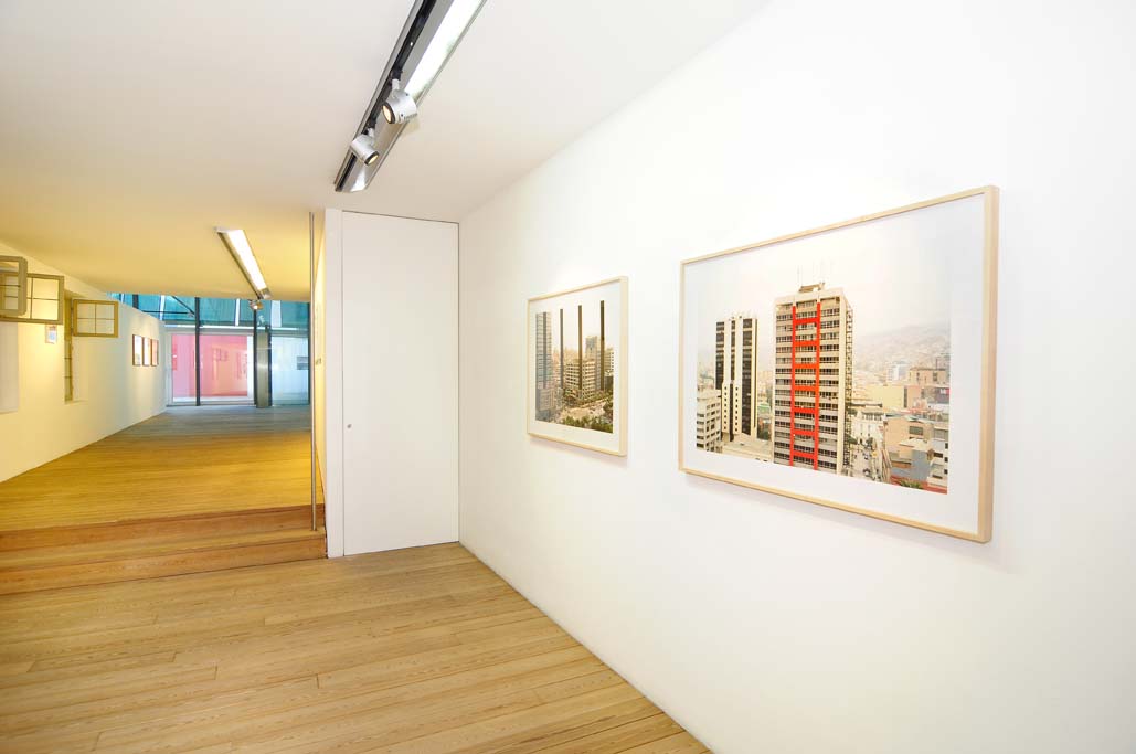 Parallel zu den skulpturalen Werken entstehen seit Anfang der 90er Jahre Fotoarbeiten mit Entwürfen für ortsbezogene Interventionen. Im schicken Badeort an der italienischen Riviera, im pittoresken Dorf mitten im Bayerischen Wald und im unüberschaubaren Häuserdschungel einer koreanischen Großstadt – überall fotografieren Maik und Dirk Löbbert die architektonischen Situationen, deren Eigenheiten sie besonders interessieren. Diese Aufnahmen mit der vom Menschen gestalteten Umwelt bilden dann den Ausgangspunkt für virtuose und von der Wirklichkeit losgelöste „Kunststücke“: Elemente werden eingefügt, verändert, eliminiert oder verrückt, ohne dass die beiden Brüder auf die Realisierbarkeit der jeweiligen Idee achten. Dabei verschiebt sich der künstlerische Fokus von der abgebildeten dreidimensionalen Situation hin zur Zweidimensionalität des Fotos, so dass ein ebenso facettenreiches wie irritierendes Wechselspiel zwischen Fläche und Raum, Abbild und Wirklichkeit, Realität und Fiktion entsteht.