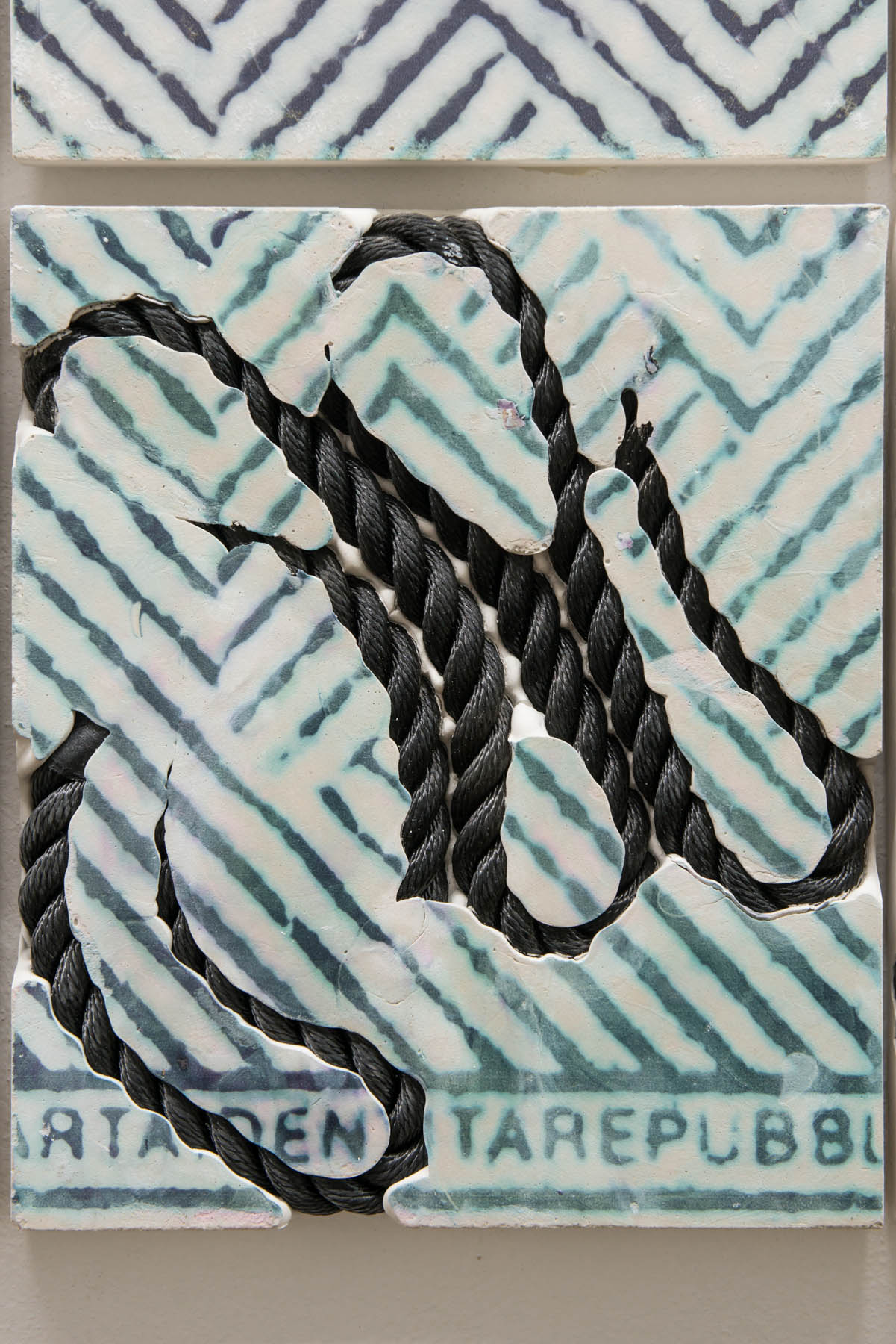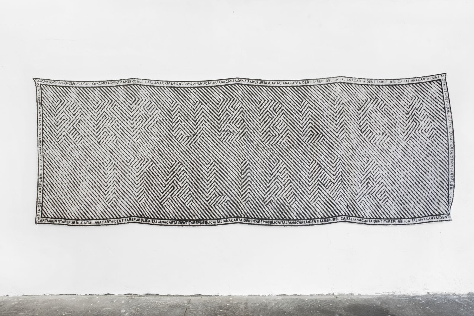 Claudia Barcheri (geboren in Bruneck, lebt in München) entwickelt, ausgehend von der Grafik des italienischen Passes, eine Serie von dreidimensionalen Arbeiten. Dabei reflektiert die Künstlerin das Thema der Herkunft und Zugehörigkeit aus ihrer persönlichen Situation als deutschsprachige Südtirolerin in Italien. Barcheri führt das Hintergrundmuster des Passes mit dem eingeschriebenen „Repubblica Italiana“ in einem ornamentalen Gipsrelief weiter, das sie in den jeweiligen Museumsräumen ortsspezifisch installiert.