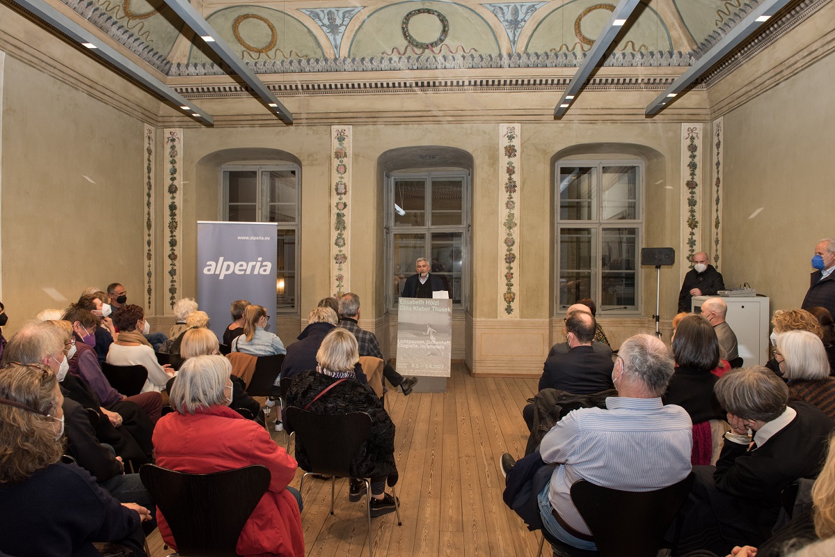 Die erste Begegnung 1973, mündet nun – 50 Jahre später – in eine Wiederbegegnung: Der Nachlass Gina Thuseks, aufbewahrt im Archiv des Palais Mamming Meran, wird für Elisabeth Hölzl Erinnerungsmoment und Inspiration. Ihr poetisches uns sensibles Werk, entfaltet in dieser Ausstellung zusammen mit Thuseks Ouevre, eine neue, raumgreifende Dimension. So geht die Schau über eine Doppelausstellung hinaus und wird durch die Verflechtung beider Werke zu einem neuen Ganzen.