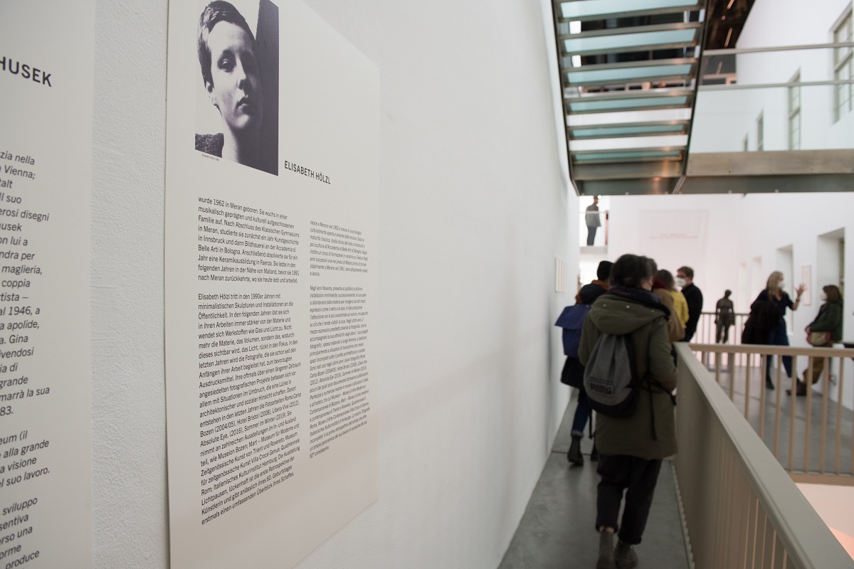 In den frühen 1970er-Jahren haben sich die beiden in Meran kennen gelernt: Thusek war damals eine reife Künstlerin, die zwei Weltkriege, die Konfinierung nach Meran und eine 16 Jahre anhaltende Staatenlosigkeit hinter sich hatte. Hölzl ein junges Mädchen, gerade am Anfang seiner künstlerischen Entwicklung. Obwohl die beiden Künstlerinnen verschiedenen Generationen angehören und durch gänzlich unterschiedliche Lebensumstände geprägt wurden, überrascht eine Fülle von Bezügen zwischen ihren Werken.