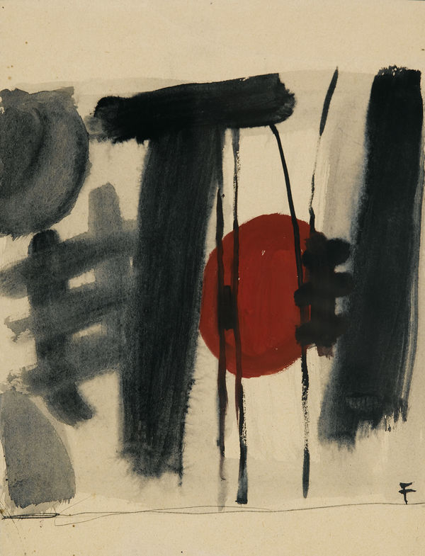 Die „Schöpfer“ und „Schreiber“ bilden ab 1954 erste Arbeiten, die die Suche nach der Ablöse der Naturnachahmung nachvollziehbar machen. Der Schritt von den einfachen Umrissen dieser Figuren zu den verselbständigten dunklen Strichen auf hellem Grund ist nur mehr ein kleiner und soll durch die Aufeinanderfolge der Werke in der Ausstellung sichtbar werden.