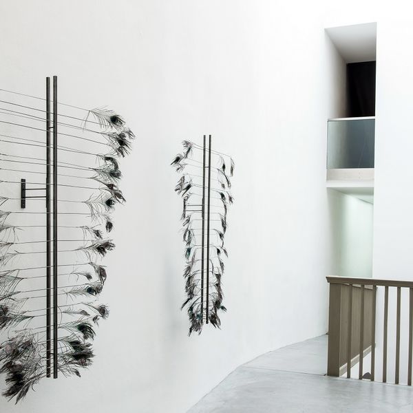 Alek O. (*1981 in Buenos Aires) geht in ihren Arbeiten von bereits bestehenden Objekten und Materialien aus, die sie zu Kunstwerken umwandelt. So etwa in der ortspezifischen Installation “L’impero delle luci” (2017), in der sie mit gesammelten und getrockneten Blättern arbeitet.