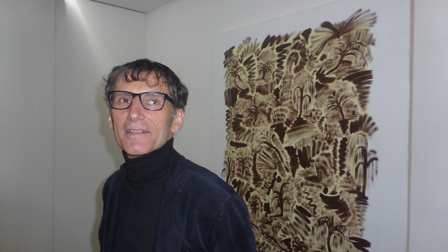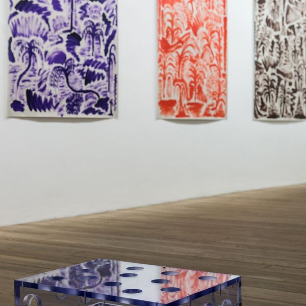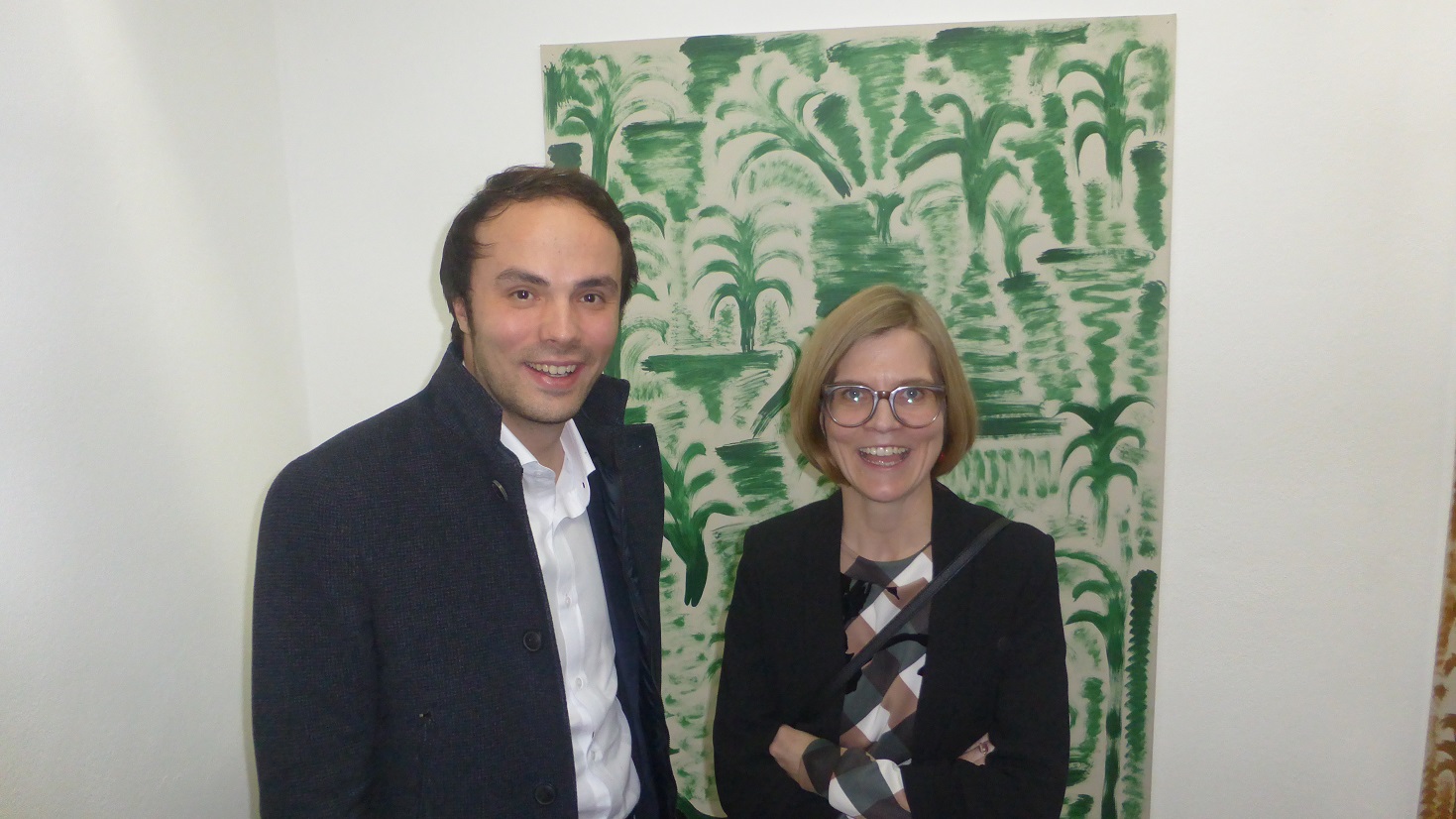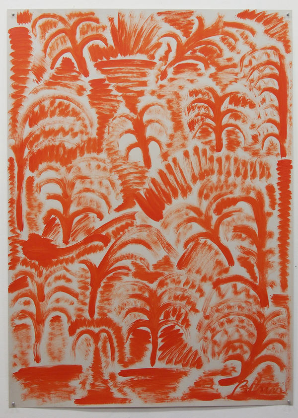 Die Malereien von Stefano Pedrini (*1980 in Sondrio) sind dichte Anhäufungen von Zeichen – grafischen Darstellungen von Elementen, die Natur symbolisieren. So füllt er etwa die Leinwand in einer fast mechanischen Handlung mit Palmen oder Blättern, die lediglich durch ein paar Pinselstriche definiert sind und schafft dabei eine dichte, ornamentale Struktur.