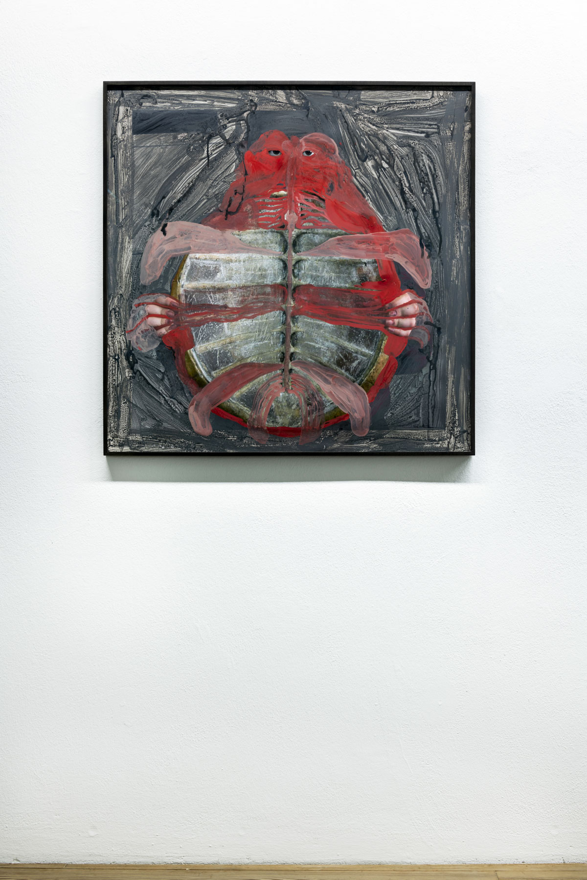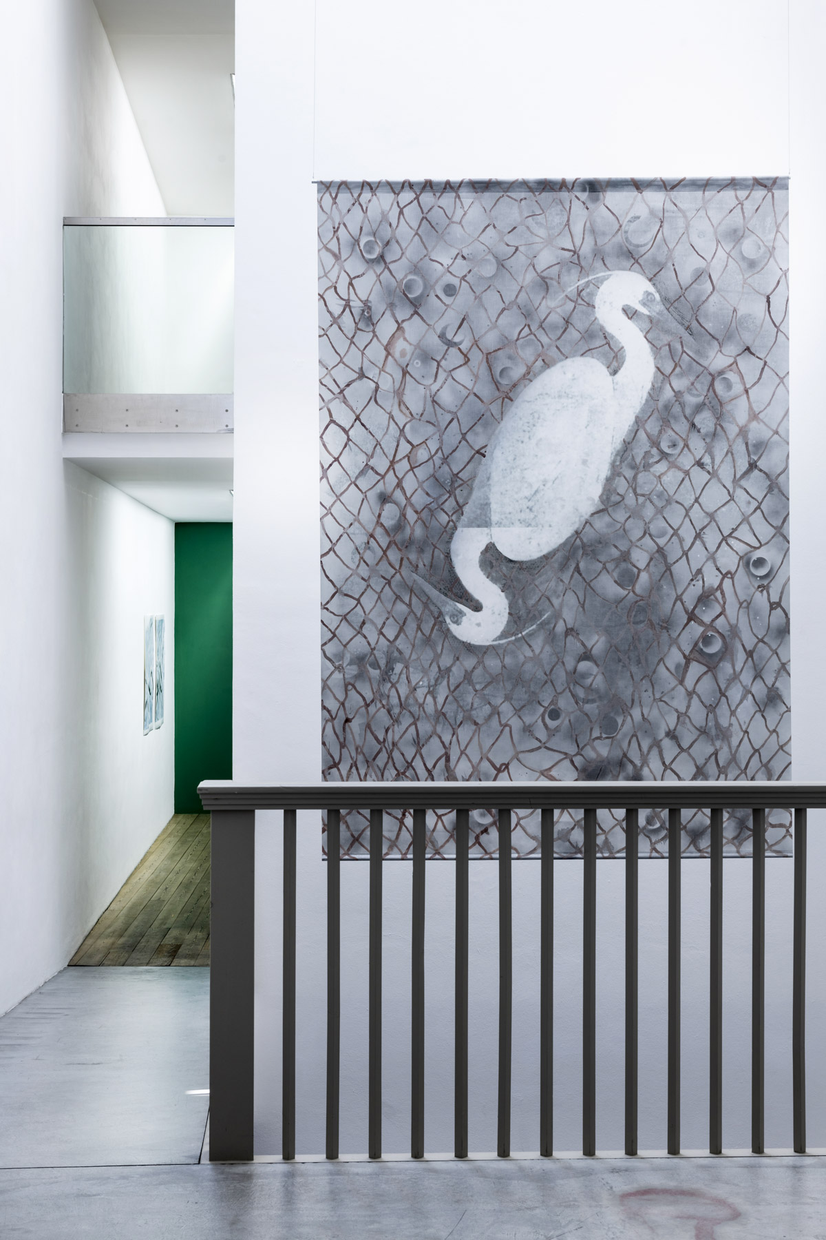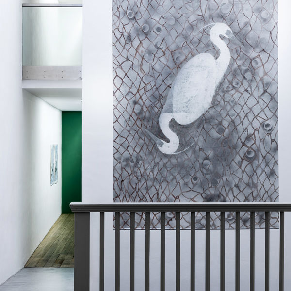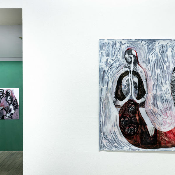 Özlem Altin lässt Körperfragmente, Wassertiere und Seejungfrauen in immer neuen Anordnungen in ihren Bildern auftauchen, verbunden mit rhythmischen wellenartigen Pinselstrichen, und sie lässt die Besucher*innen von der glatten, klaren Oberfläche des Sees in dessen unergründliche Tiefen tauchen.