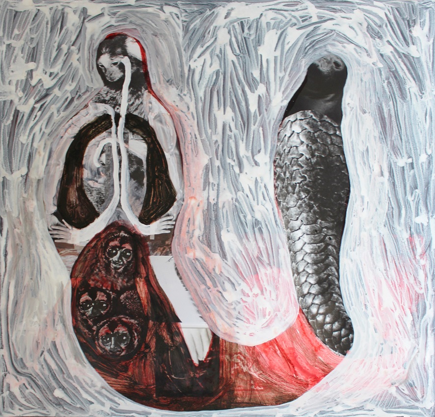 Özlem Altin arbeitet aus einer umfangreichen Sammlung von eigenen und gefundenen Bildern, Fotografien und Texten, die sie bearbeitet, übermalt, zerschneidet, neu kombiniert und einer intuitiven Erzählung folgend im Ausstellungsraum zusammensetzt. Dabei ist der Körper – seine Gesten und Haltungen – ein zentrales Thema. Für die Künstlerin „ist der Körper ein Vehikel zur Übertragung von Wissen, Erfahrung, ein Vehikel zur Kommunikation und des Austauschs“ (Reinhard Braun, camera austria, 2017). So zeigt sie in Meran den See als Biotop, in dem Lebewesen sich formieren, entwickeln, neu entstehen und transformieren, in dem sich Seejungfrauen und andere Mischwesen tummeln – ähnlich, wie in in der menschlichen Psyche ständig neue Formen und Bilder entstehen.