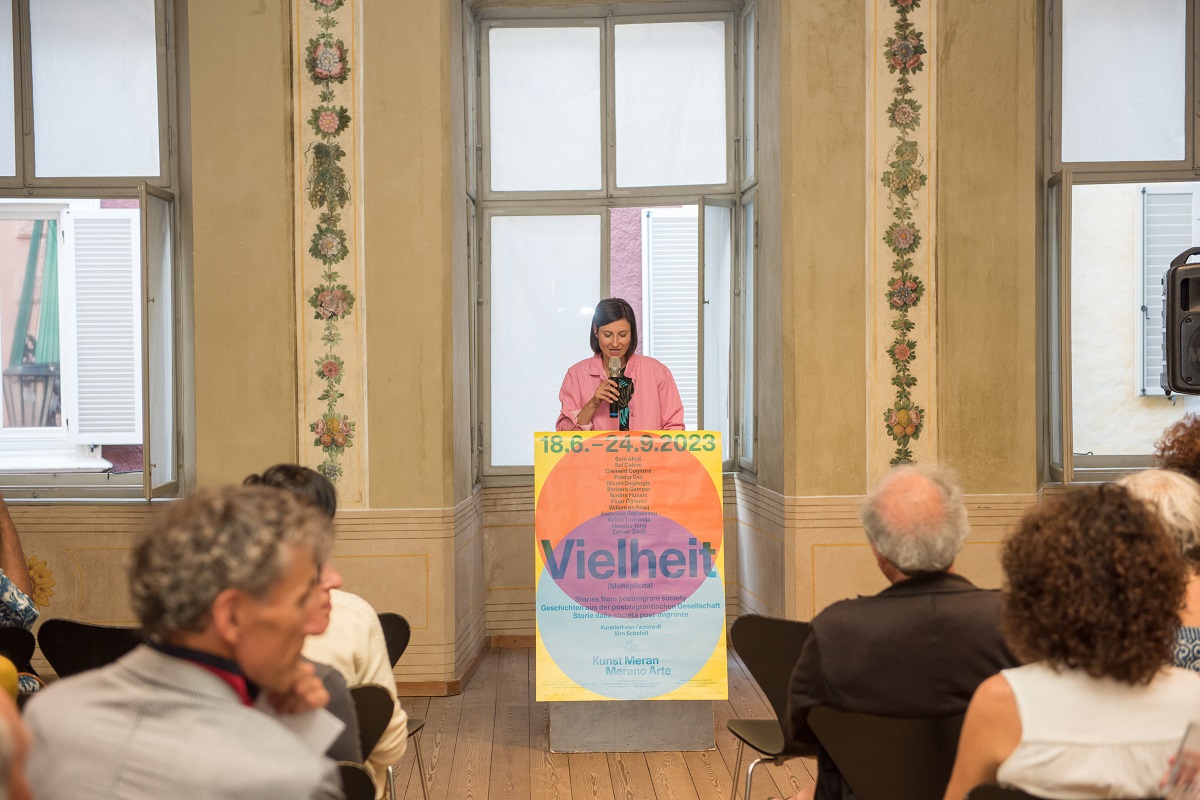 Ausgehend von Südtirol erkundet die Ausstellung Vielheit. das Zusammenleben in postmigrantischen Gesellschaften: Wie verändern sich Vorlieben, Gewohnheiten, Wahrnehmungen und Beziehungen, wenn Menschen mit unterschiedlichen kulturellen, sozialen, ethnischen und religiösen Hintergründen sich einen Ort miteinander teilen? Wo und wie wird sichtbar, was an Neuem entsteht? Welche Möglichkeiten und Anforderungen leiten sich daraus ab? Mit Beiträgen lokaler und internationaler Künstler*innen untersucht die Ausstellung, was es bedeutet, gesellschaftlichen Wandel jenseits einfacher Konzeptionen von Zugehörigkeit zu denken.