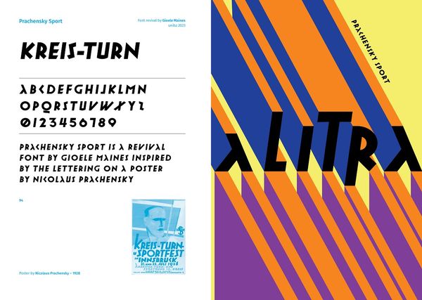 Gioele Maines, Prachensky Sport, 2024. Font inspiriert von der Typografie eines Plakats von Nicolaus Prachensky