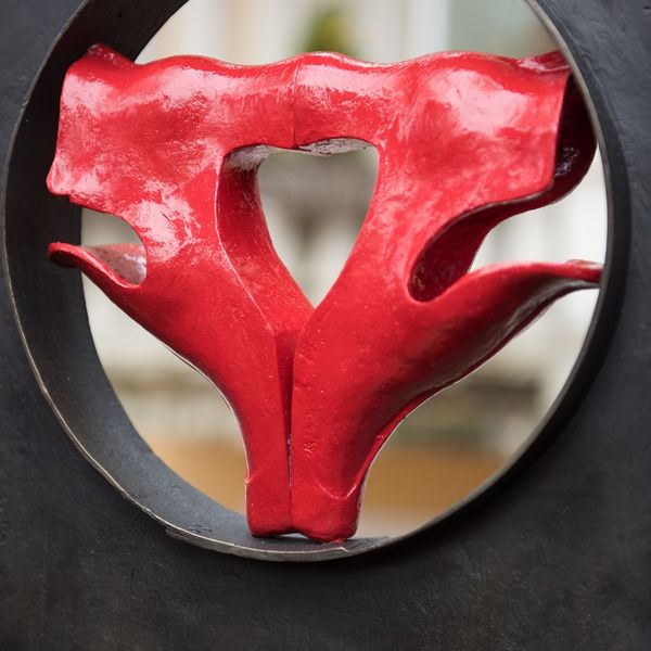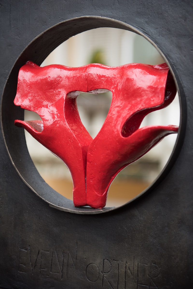 Das Porträt von Evelyn Ortner erscheint, trotz seiner figurativen Ausführung, nicht als Abbild der 1997 Verstorbenen, sondern wird wegen seines leicht abstrahierten Anklangs zu einer Metapher ihrer schillernden Persönlichkeit. Die auf dem ersten Blick als Herz anmutende Form, gestaltet sich erst bei längerer Betrachtung zu einem Paar roter Schuhe. Franz Pichler, langjähriger Freund von Evelyn Ortner, setzt dabei ganz bewusst Ortners gemeinhin bekannte Leidenschaft für das Sammeln extravaganter Damenschuhe in Beziehung zu der 2009 in Ciudad Juárez (Mexiko) entstandenen Aktion der „Zapatos Rojos“. Diese Aktion findet weltweit oft parallel zum Tag der Frau, am 8. März, statt. Das Positionieren vieler hunderter roter Damenschuhe auf Straßen und Plätzen steht dabei nicht nur für die Präsenz des weiblichen Geschlechts im öffentlichen Raum, sondern ist ein visueller Aufruf gegen die vielen Misshandlungen von Frauen und häufigen Femiziden im Kontext von patriarchal ausgerichteten Gesellschaften. Pichler verbindet so auf ausdruckstarke Weise Ortners Vorliebe für Schuhe und ihre wichtige Arbeit für das Frausein mit einem hochdiffizilen gesellschaftlichen Thema.