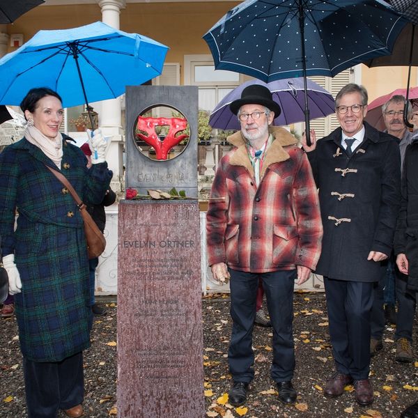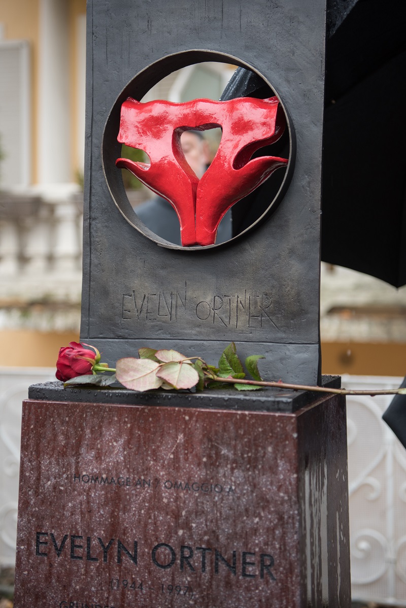 Die Wahl Franz Pichlers für die künstlerische Umsetzung der Porträtbüste beruht auf seiner hervorragenden bildhauerischen Leistung wie auch auf seiner langjährigen Freundschaft mit Evelyn Ortner, die es ihm erlaubt hat, ein intimes Bild der Verstorbenen in Form einer Plastik zu zeichnen.