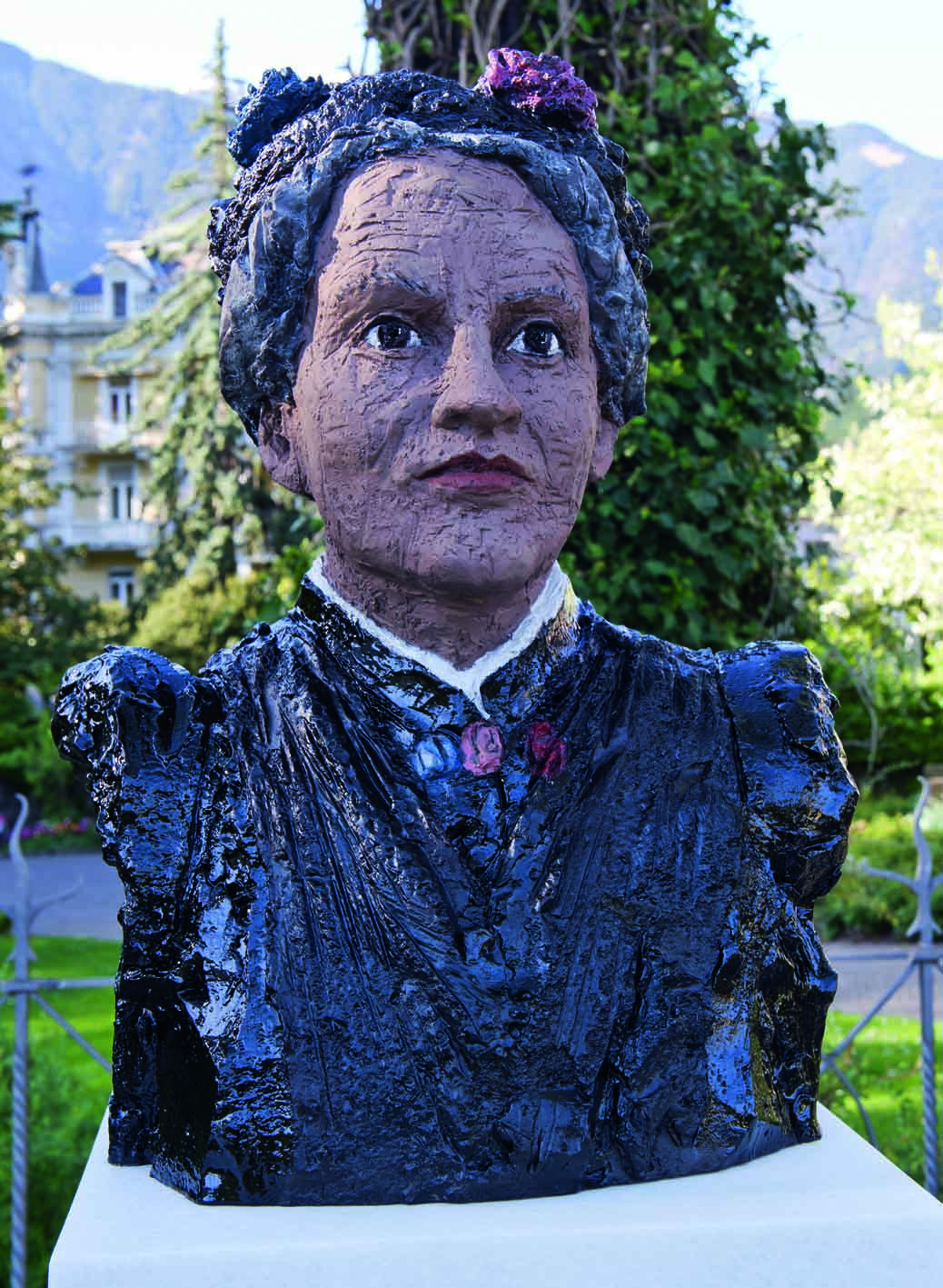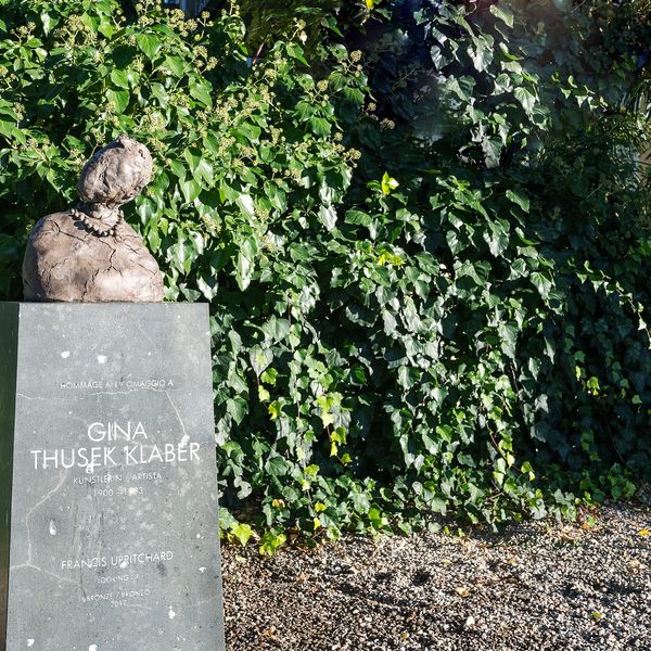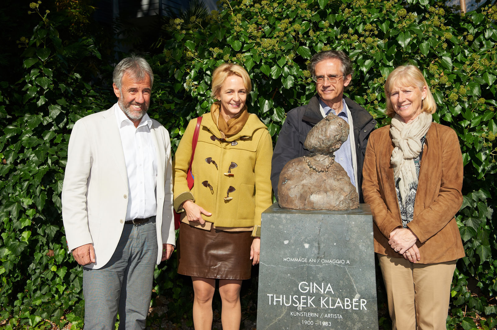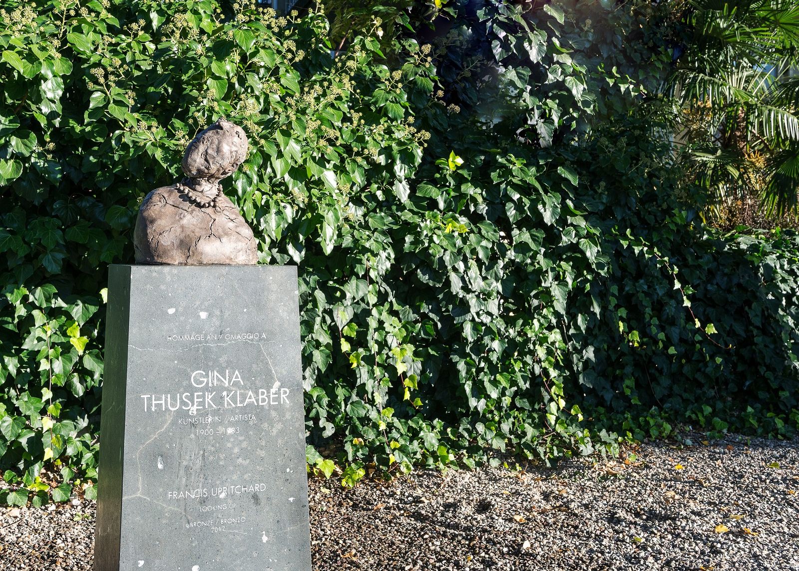 Das Schicksal von Gina Thusek Klaber ähnelt jenem der Russin. Thusek konnte als Saatenlose nicht mehr über die Grenze der Tschechoslovakei und so blieb auch sie bis zu ihrem Tod in Meran. Francis Uprichard, eine Neuseeländische Bildhauerin, die in London lebt, mit Bezug zu Meran, hat ihre Bronze gestaltet.