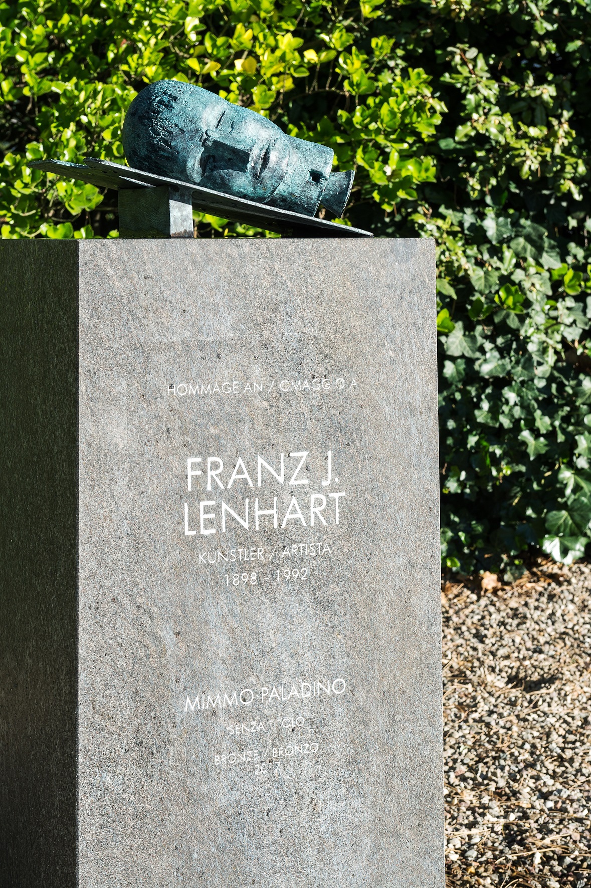 Mimmo Paladino ist der wichtigste Vertreter der Transavanguardia, einer italienischen Stilrichtung, die von Achille Bonito Oliva in den 60er Jahren betreut wurde. Er hat die Bronze von Franz J. Lenhart gestaltet. Lenhart war österreichischer Abstammung. Er kam 1922 nach Meran. Beruflich hat er sich vor allem mit Werbegrafik beschäftigt.