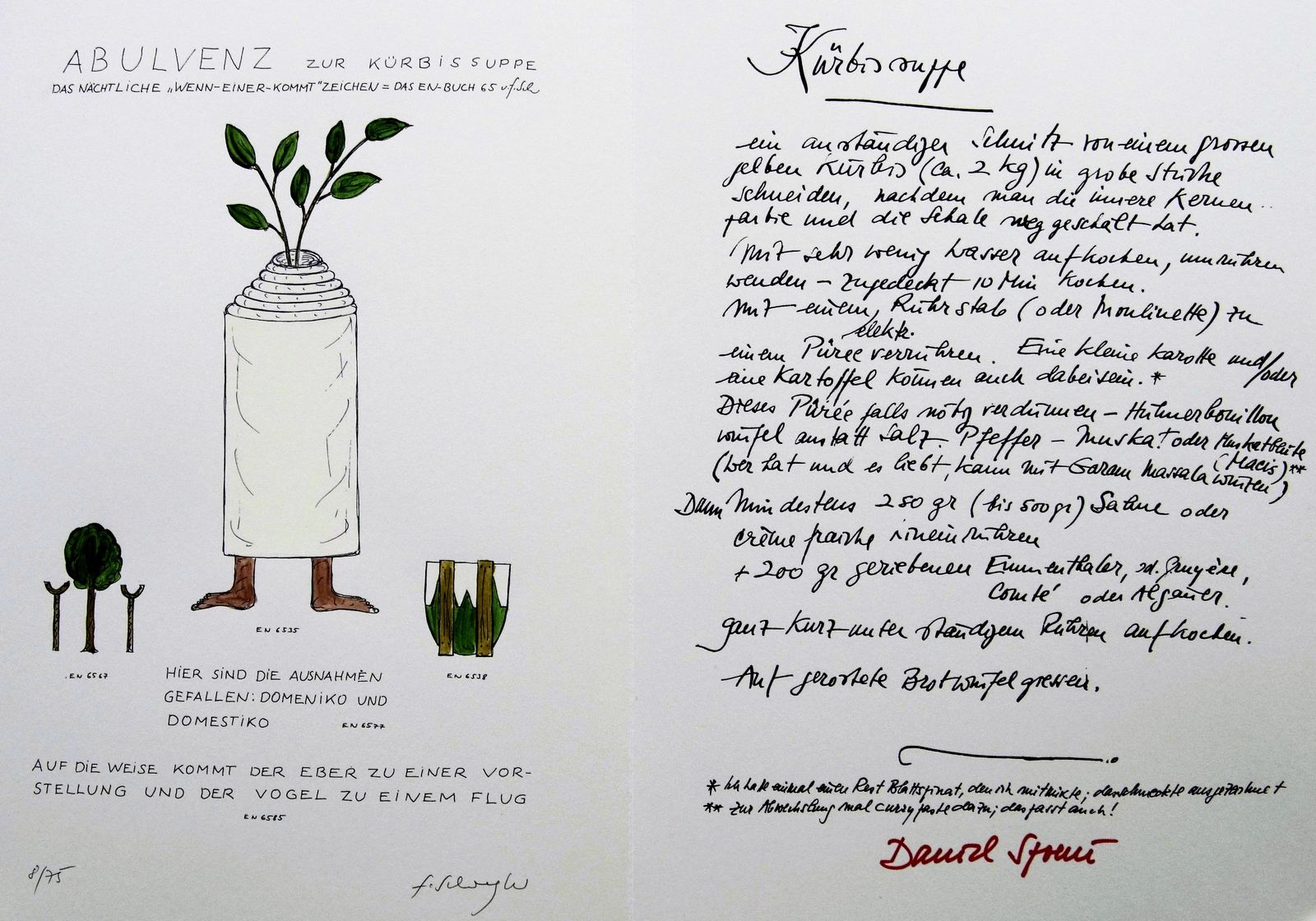 Wir sind noch auf der Suche nach Freiwilligen, die das Kochen eines der einfachen „Spoerri-Suppenrezepte“ übernehmen möchten. Bitte melden Sie sich bei Interesse unter info@kunstmeranoarte.org oder unter +39 0473 212643. Im Voraus ein herzliches Dankeschön für Ihr Engagement und Ihre Unterstützung!
