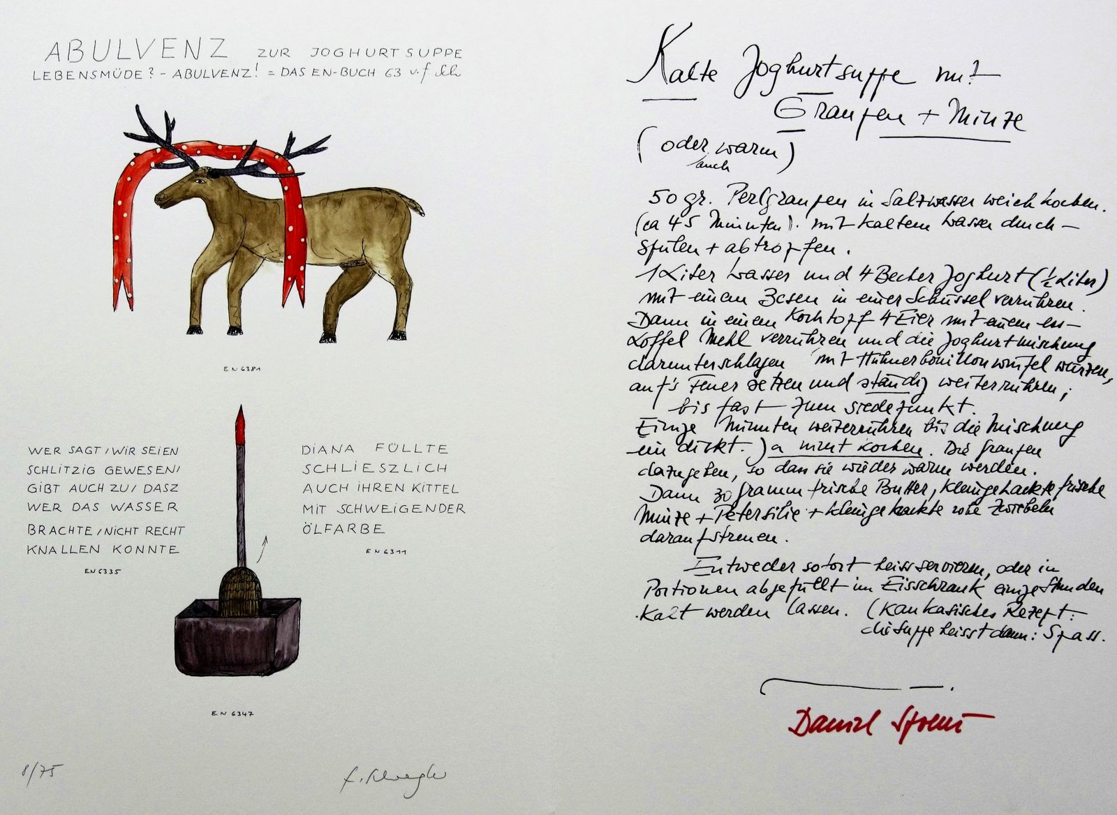 Am 24. September 2022 um 12.30 Uhr, fast 40 Jahre nach der Uraufführung, wird am Kunsthaus ein Reenactment des Eat-Art-Happenings inszeniert. Wir werden „Spoerris Suppen“ gemeinsam essen sowie feiern und diskutieren.