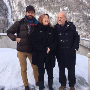 Im Rahmen des Künstleraustausches Meran-Salzburg Der Bürgermeister Paul Rösch und die künstlerische Leiterin von Kunst Meran Christiane Rekade sprechen mit der Gastkünstlerin aus Salzburg Helga Eibl