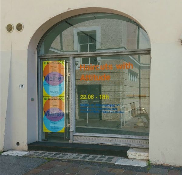 An insgesamt vier Donnerstagen im Juni und Juli lädt Kunst Meran Merano Arte zu „Haircuts With Attitude“ ein, einem fiktiven Friseursalon mit realem Programm in der Meraner Innenstadt. Bei Drinks und Musik schneidet der Künstler Filippo Contatore seinen Gästen die Haare und spricht mit ihnen über Fragen kultureller Identität.