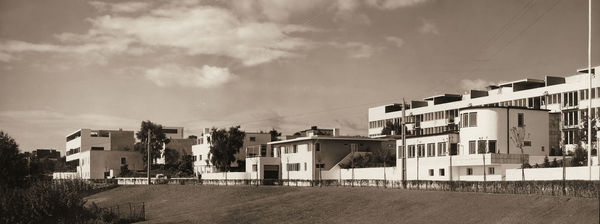 Eine Ansicht der Weissenhofsiedlung aus dem Jahr 1927 von der Rathenaustraße aus (Weissenhofmuseum Stuttgart).