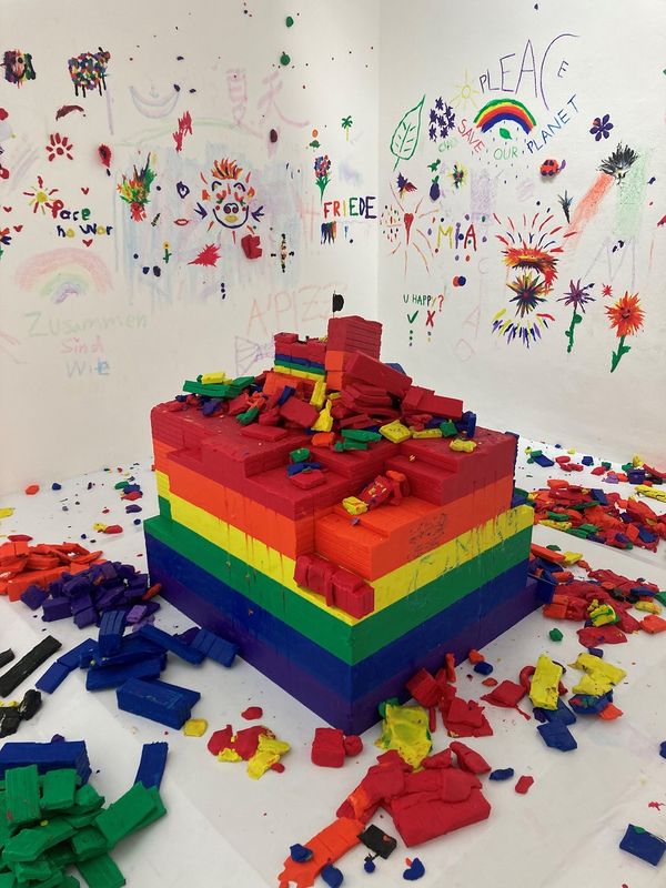 Wer sind wir und wer möchten wir sein? Anhand des Kunstwerkes von Norma Jeane (einem Knetkubus, der den Besucher*innen zur freien Verfügung steht) nehmen die Kinder das Thema „Wandelbarkeit“ genauer unter die Lupe. Knete, die durch ihre Materialbeschaffenheit eine Vielzahl an Neuschöpfungen zulässt, lädt zum Kreieren und zum Re-Kreieren ein.