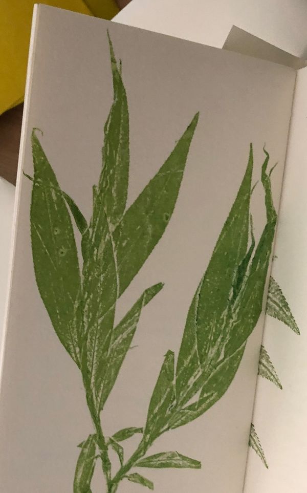Saisonale Pflanzen und Blätter werden mit Druckfarben eingefärbt und im Selbstdruck auf verschiedene Papiere gedruckt. Das Gedruckte kann eine kleine Pflanzenfibel oder eine besondere Karte werden…