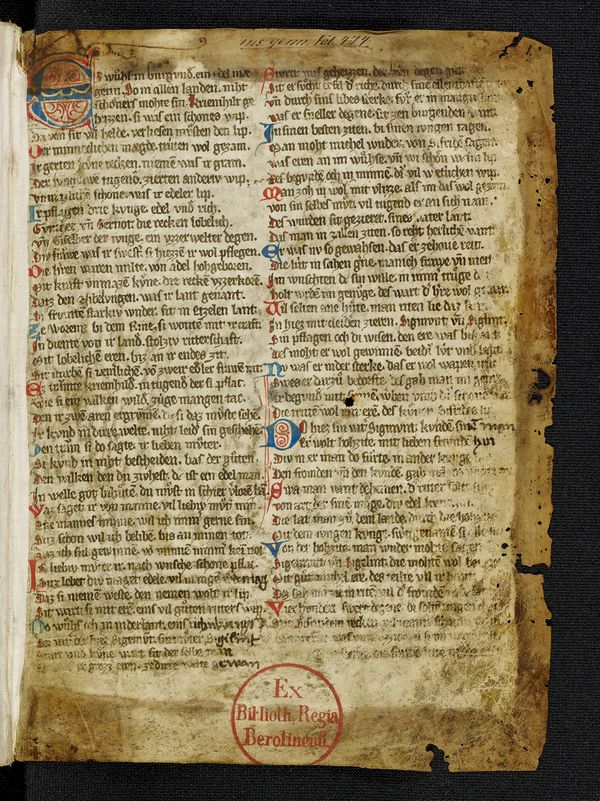 Das Nibelungen-Manuskript Staatsbibliothek zu Berlin - Preußischer Kulturbesitz; Abteilung Handschriften und Historische Drucke; Signatur: Ms. germ. fol. 474